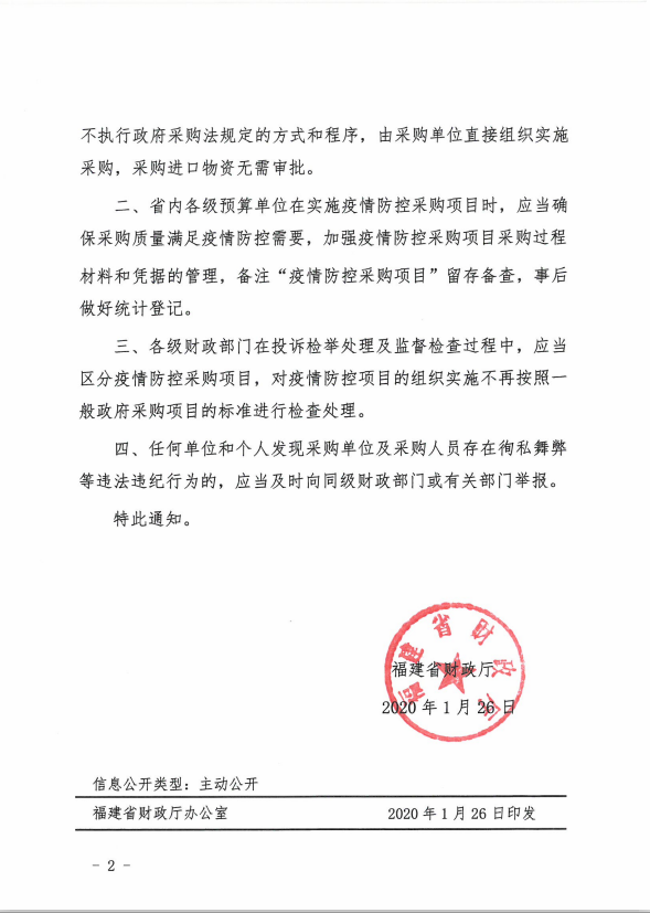 福建省財(cái)政廳關(guān)于落實(shí)疫情防控采購便利化有關(guān)政策的通知